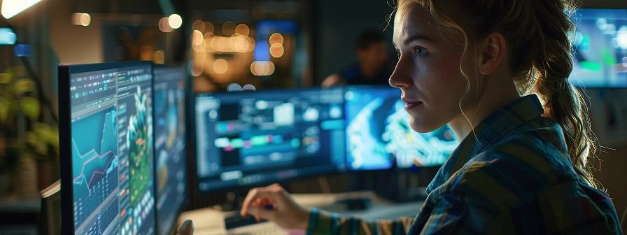 Alt text: A woman diligently working on her computer screen, employing the best account planning software for effective task organization.